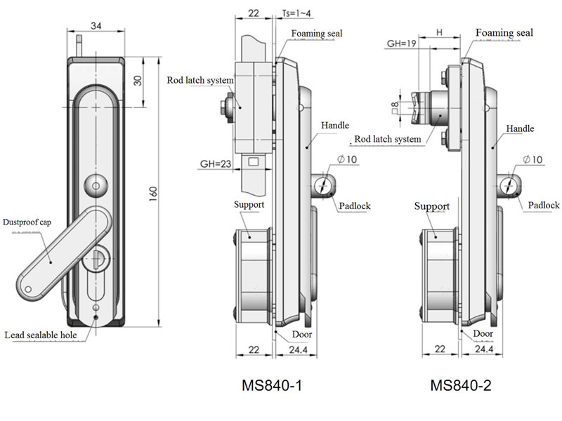 | Uso | Em combinação com o came, a alça pode girar 45 ° para abrir ou fechar facilmente a trava |